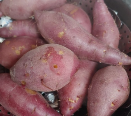 - 고구마를 잘 씻어서 준비합니다. 고구마를 보관할 때 겉에 흙이 있는 상태에서 보관하는 것이 보통 오래 보관하기 때문에 겉에 묻은 흙이 없도록 잘 씻어줍니다.